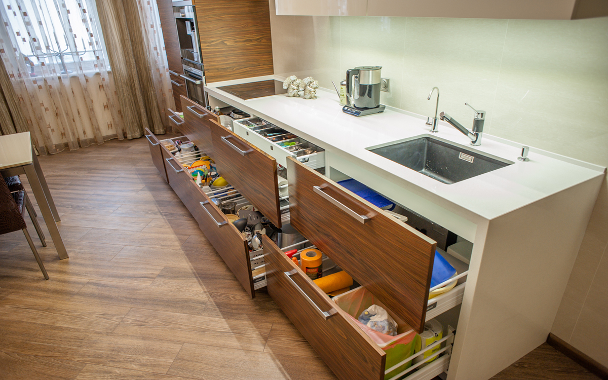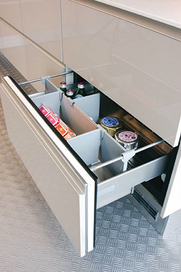 دور الأنظمة المنزلقة مهم جدًا ، حيث إنها تتيح امتداد الدرج الأقصى. وبالتالي ، لسحب محتوياته أمر سهل.