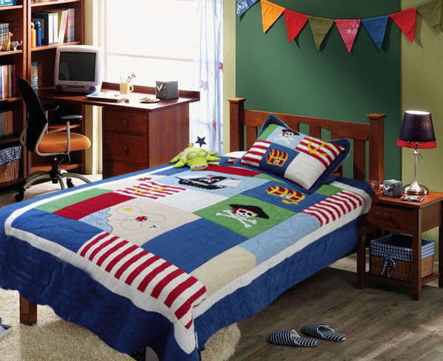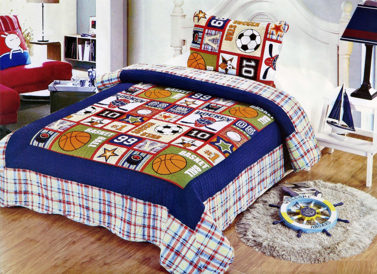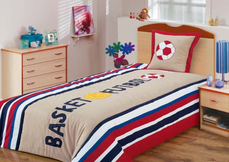 أفضل حل لمفرش السرير لصبي في أي عمر هو نموذج القطن مبطن الخفيفة مع إضافة الألياف الاصطناعية.