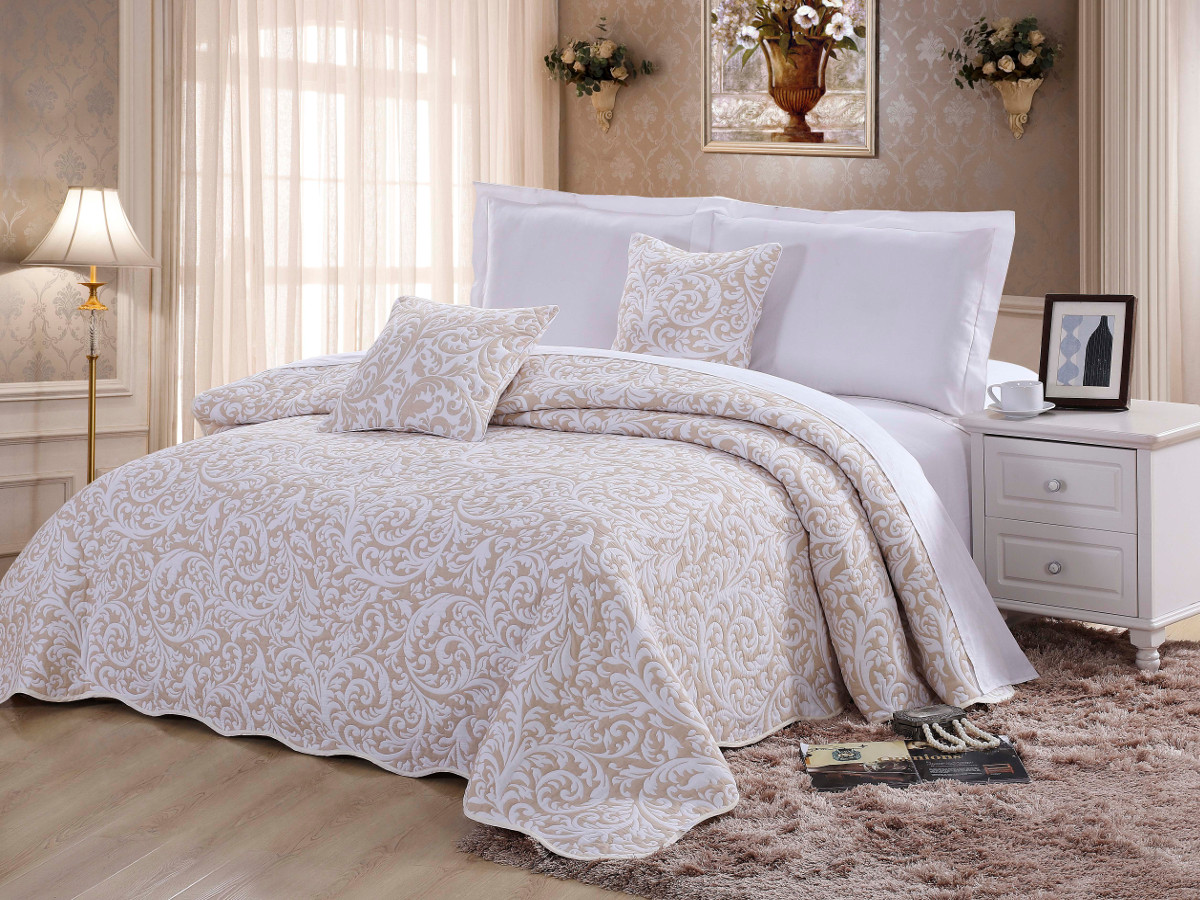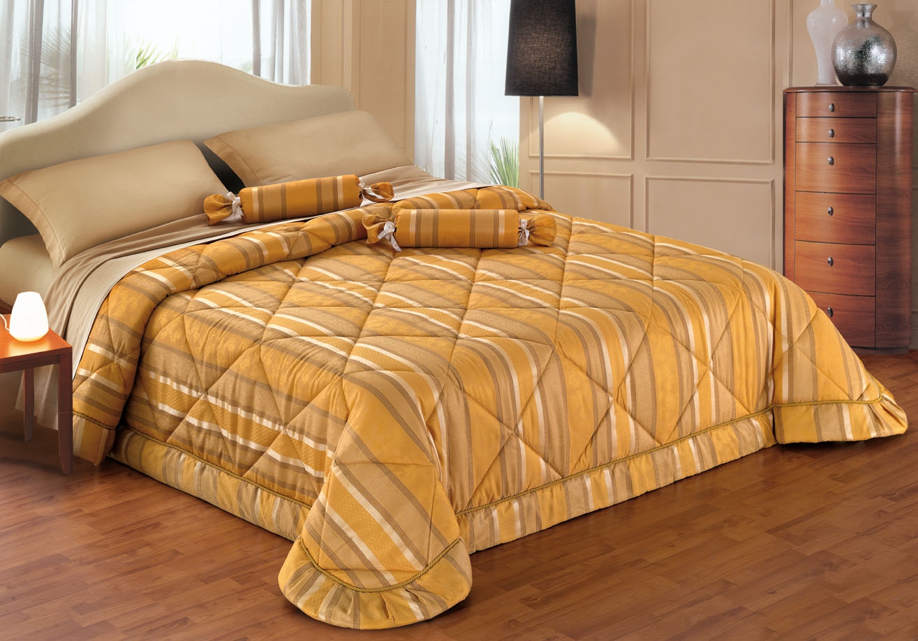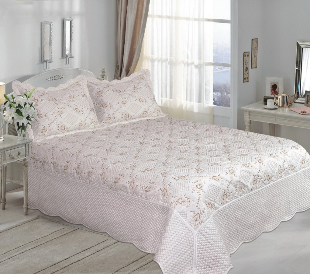 أنواع مبطن ذات صلة بشكل لا يصدق من المفارش. انهم قادرون على إخفاء العيوب الطفيفة في السرير. أنها تخلق جو من الوئام والراحة. مثل هذا المفرش على السرير سوف يتناسب تماما مع أي الداخلية. إذا قمت بالتقاط الستائر والوسائد لتتناسب مع النغمة والمصنوعة بشكل أفضل من القماش المتماثل ، فستحصل على مجموعة رائعة لغرفة النوم.