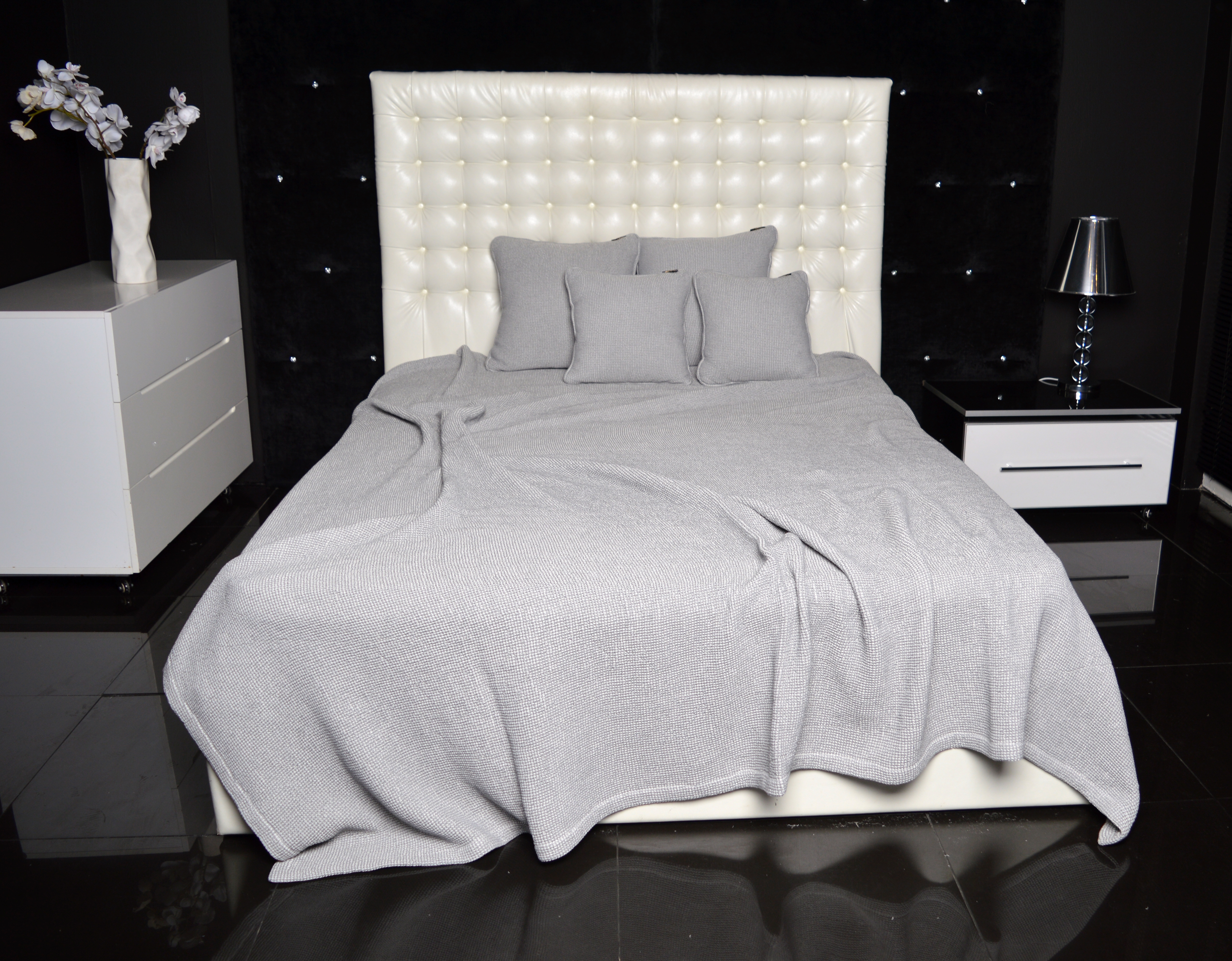 سوف يكون المفرش الأنيق هو الانتهاء المثالي من الداخل لغرفة النوم.
