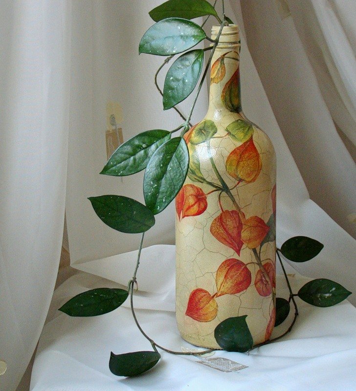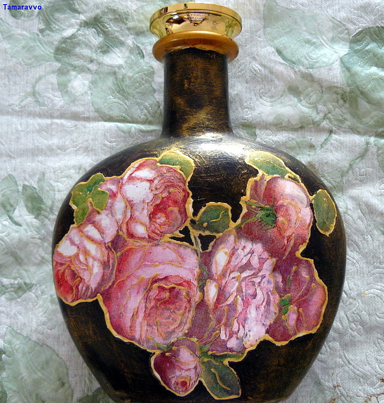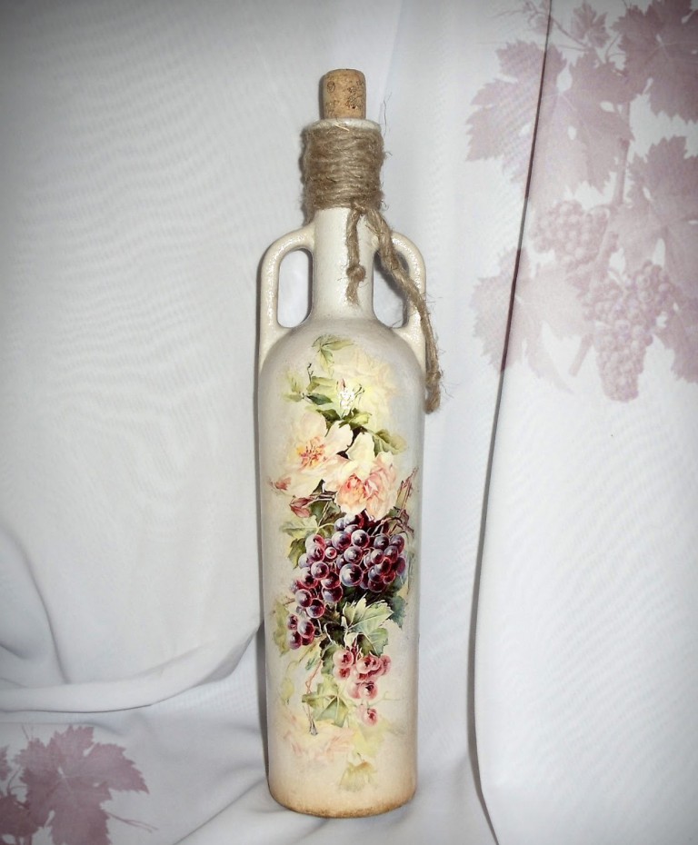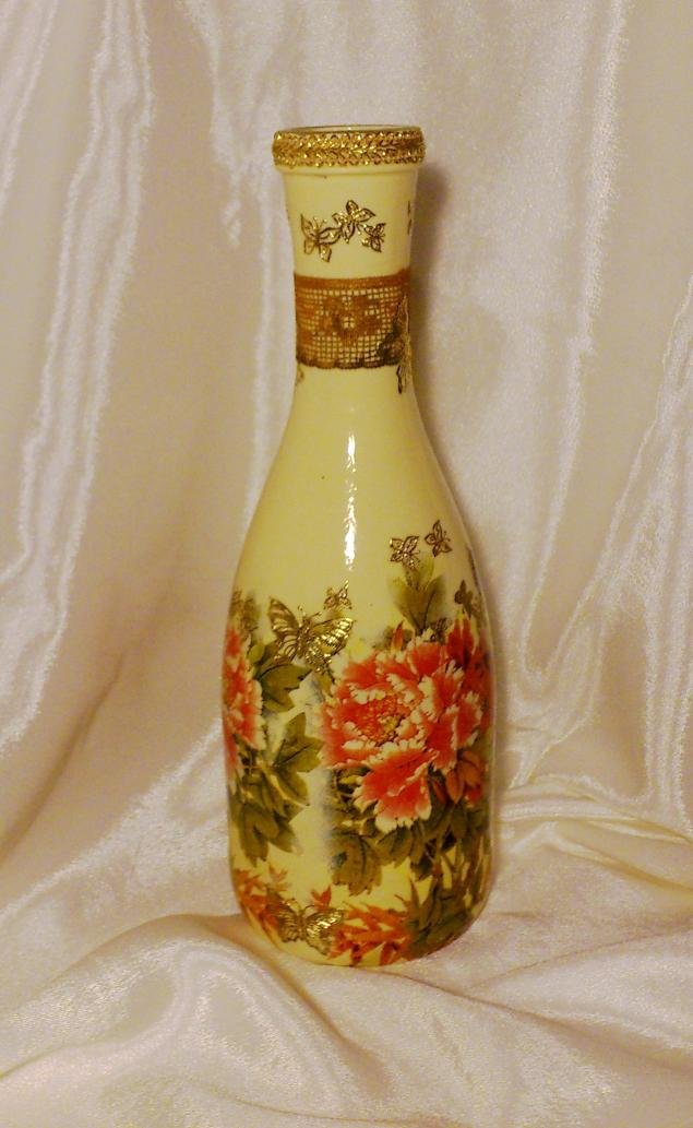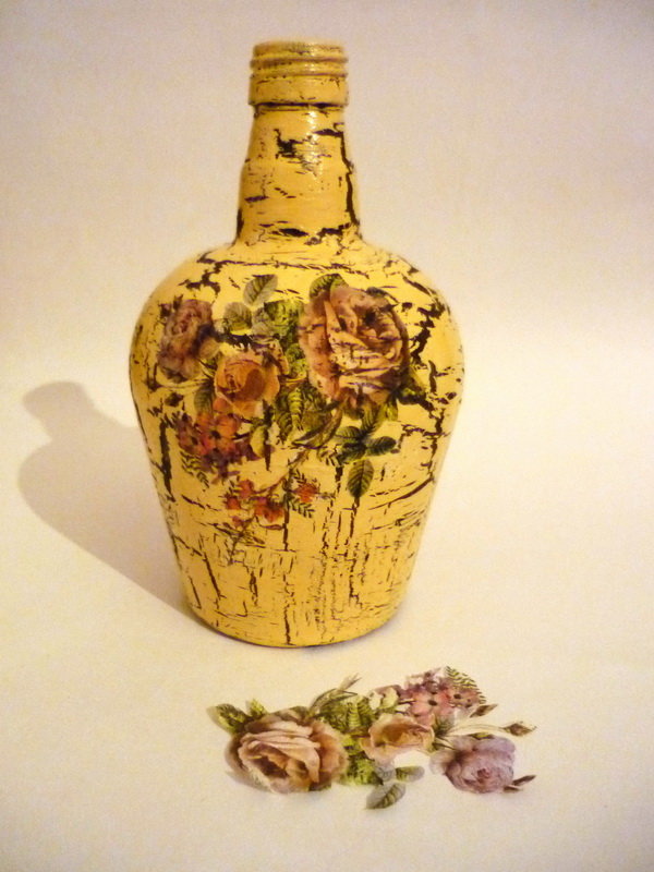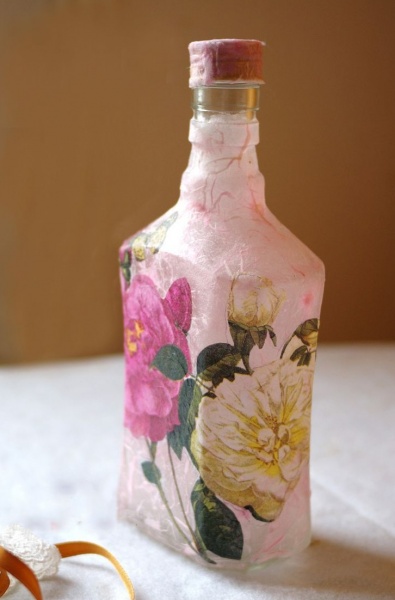 كيفية جعل decoupage من المناديل على الزجاجة