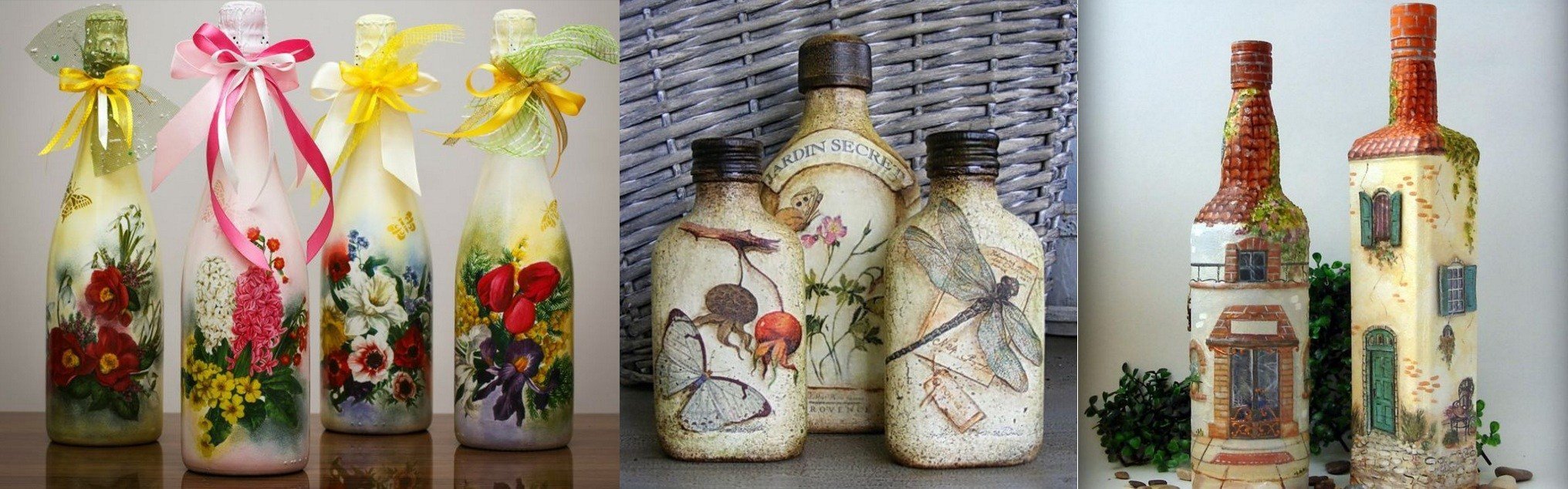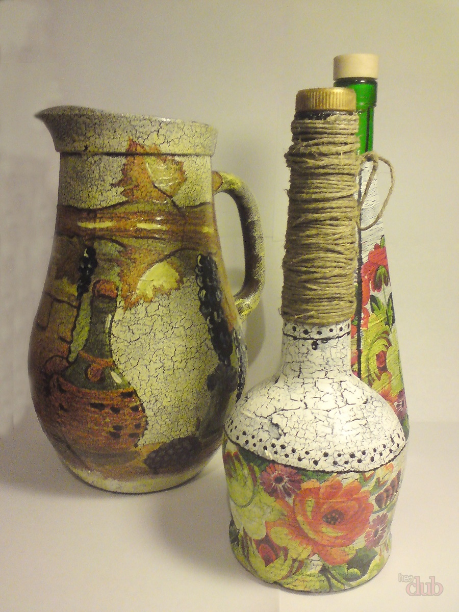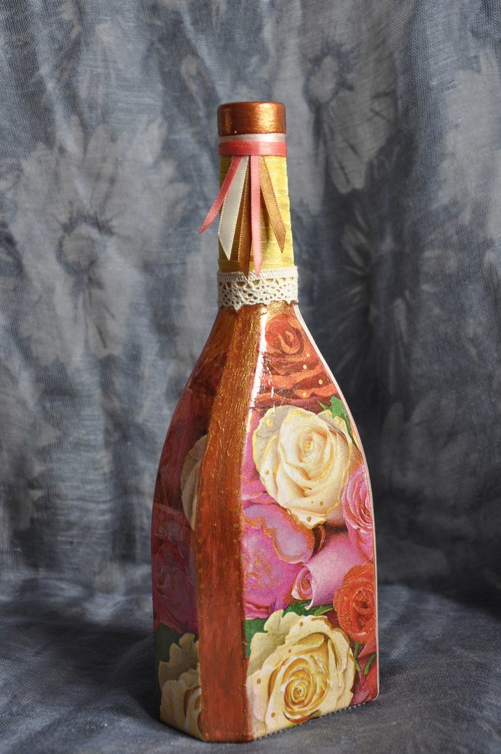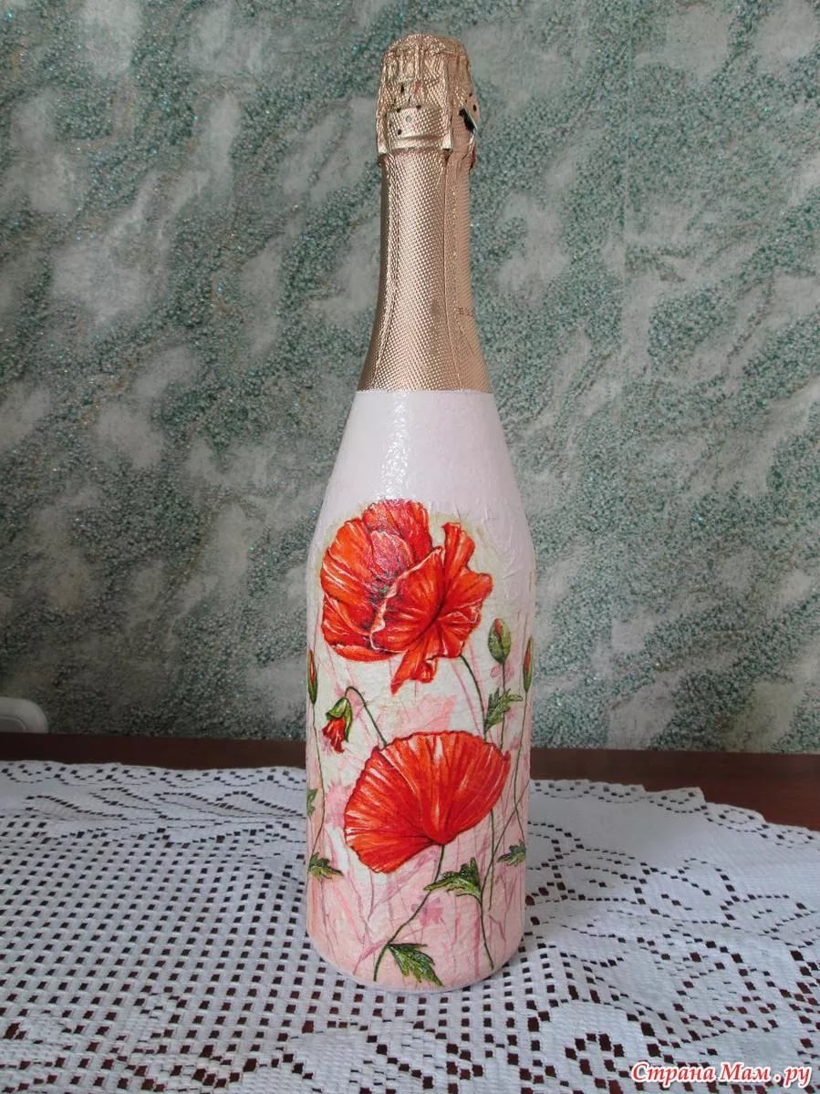 كيفية جعل decoupage من المناديل على الزجاجة