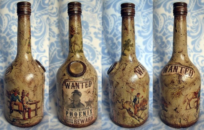 تجدر الإشارة إلى أن زجاجة مصنوعة بمساعدة decoupage العكسي لن تكون مناسبة لتخزين السوائل.