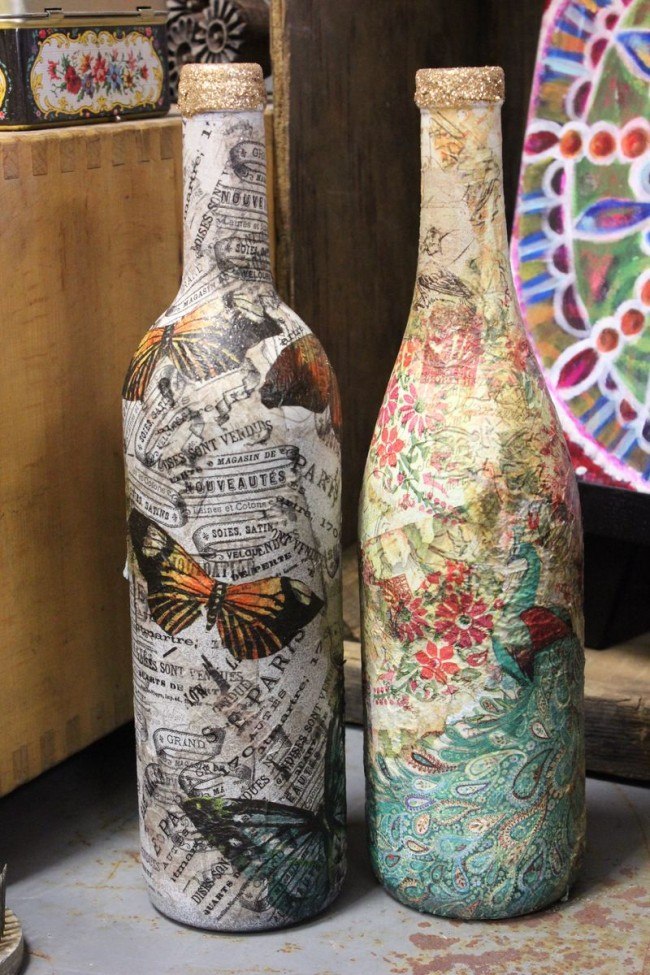 50 خيارات لزجاجات النبيذ decoupage تفعل ذلك بنفسك: