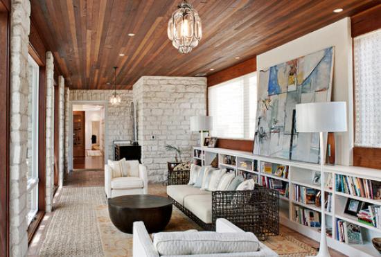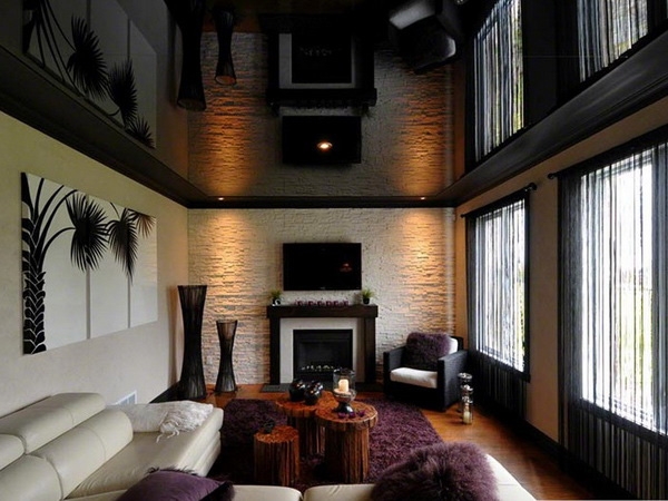 - ستؤدي الأرضية المظلمة والسقف الداكن والجدران المضيئة إلى إزالة الارتفاع وتمتد الغرفة.