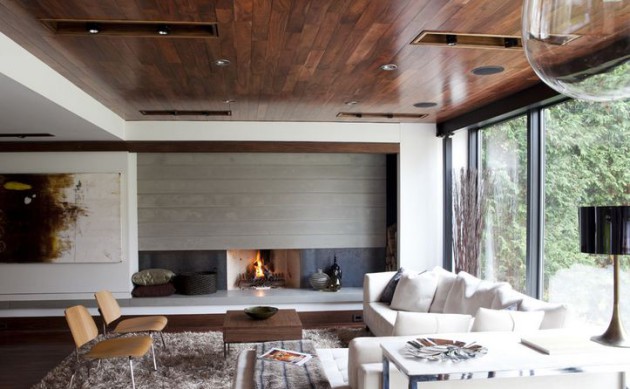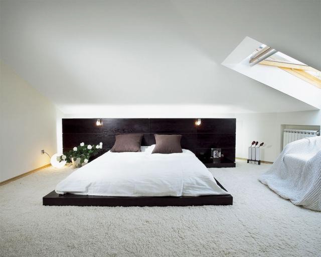 ستؤدي الأرضية المظلمة والسقف الداكن والجدران المضيئة إلى إزالة الارتفاع وتمتد الغرفة.