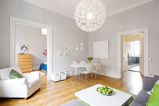 - لون فاتح من الأرض ، وورق الجدران الخفيفة ، والسقف الأبيض رفع ارتفاع السقوف.