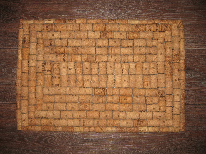 قبل البدء في عملية التصنيع ، من الضروري إعداد المواد التي تم جمعها في المنزل بشكل صحيح. من أجل جعل السجادة الناتجة رتابة ، يجب غسل فلين الخمر من الرائحة واللون الأحمر. يتم نقعها في حوض مع عامل التبييض لعدة ساعات ، ثم يتم فركها بعناية بإسفنجة.