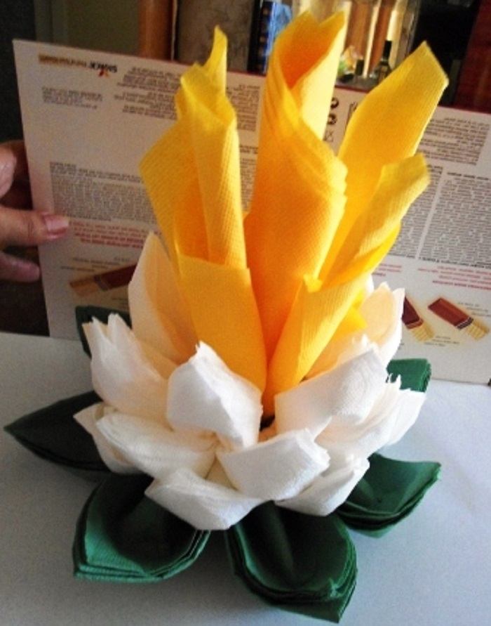 سوف يساعدك لوتس جميل من المناديل في تزيين الوجبة العادية.