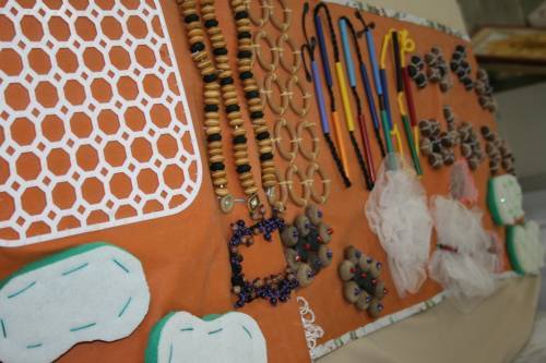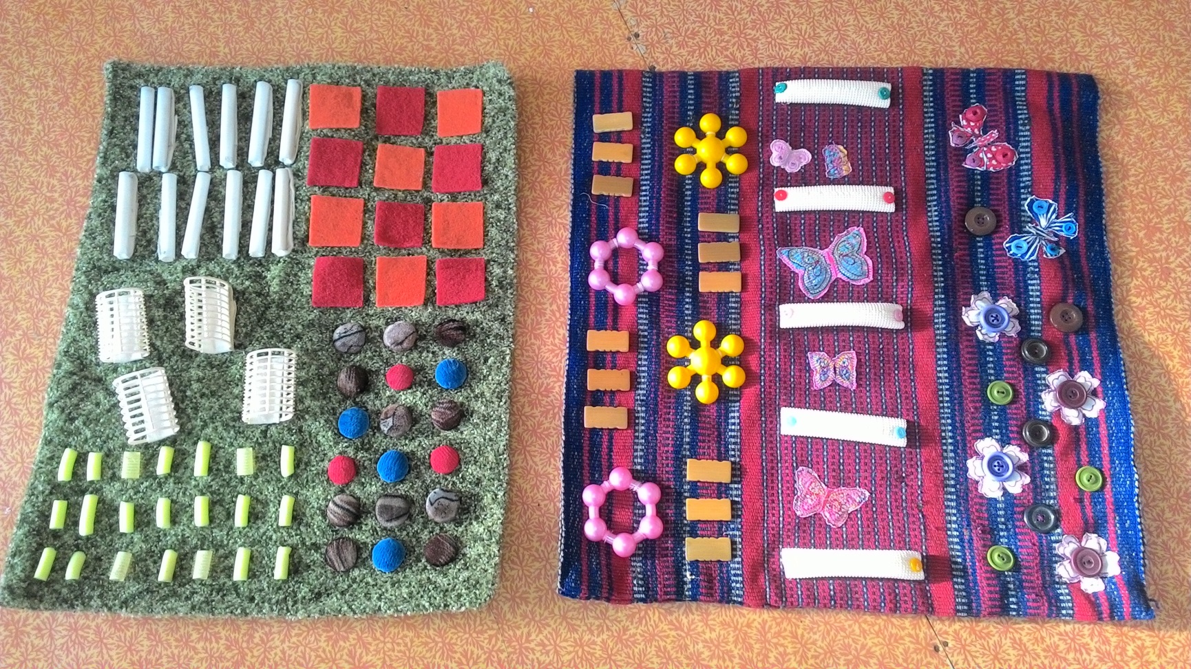 لتصنيع نماذج اللمس ، من المهم استخدام أكبر عدد ممكن من عناصر "اللمس". لذلك ، يتم إضافة السحابات الفيلكرو والسحابات من مواد مختلفة إلى الأجزاء المذكورة أعلاه.
