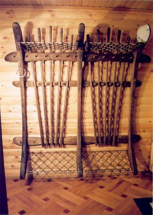 في الرواق ، يبدو رأس الغزلان أو الثور الأصلي ، حاملاً السترات والمعاطف على القرون الكبيرة.