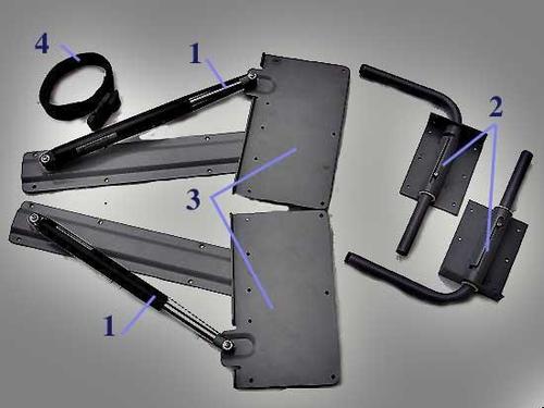 - زوج من الملحقات لأسرة قابلة للطي مع دعم دوّار والتأكيد على امتصاص الصدمات الغازية ؛