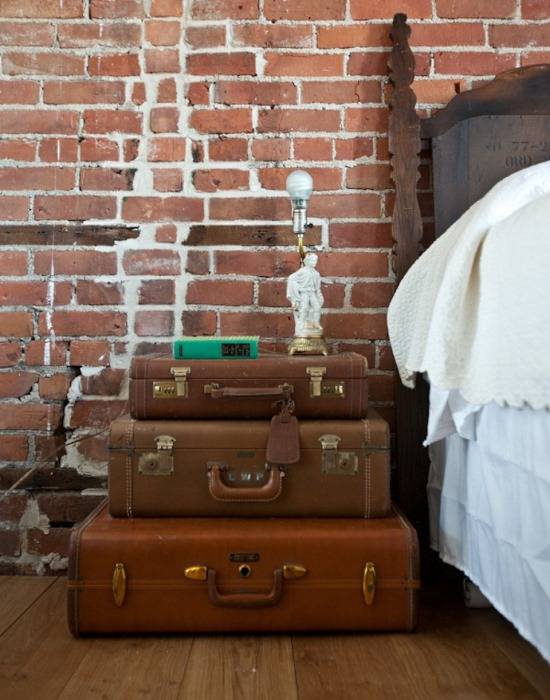 - ستنسجم طاولة السرير المصنوعة من كتل الطوب تمامًا مع كل ما تضعه عليه. تبدو أنيقة وعصرية بشكل خاص مع الزهور الخضراء المثيرة في الأواني على طاولة بجانب السرير.