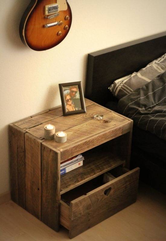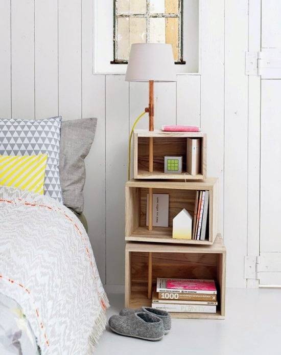 - لا يمكن التعجيل بصناديق خشبية قديمة لحمل القمامة ، لأنه بعد المعالجة الدقيقة لهذه الشجرة العتيقة القيمة ، يمكنك وضعها بأمان في تكوين خاص بدلاً من طاولة السرير.