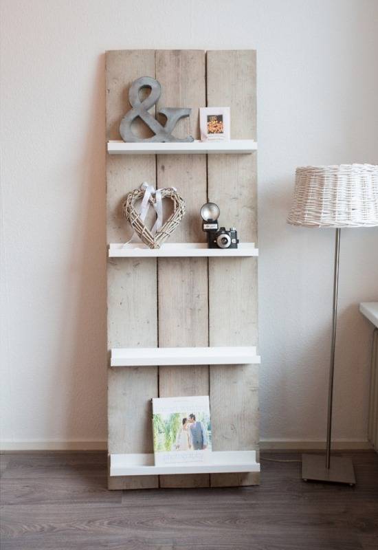 لقد حان تلك اللحظة عندما يكون من الممكن تجربة أثاث جديد في الغرفة. ببساطة ، نصلح المنتج النهائي بمساعدة مسامير طويلة ، ويمكنك الاتصال بالمضيفة ، التي ستزين الخزانة بأشياء أنيقة وزهور محفوفة بوعاء.
