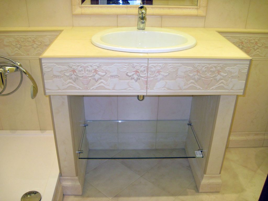 | نقر | حجر الرصيف مع طريقة التثبيت نقر من الحوض عندما عصامي سيتطلب مهارة. يتم وضع الوعاء في الفتحة المقطوعة في الجدار العلوي لقسم الأثاث. يجب أن يتطابق الفتح مع معايير الحوض تمامًا ، وإلا فإن الخزانة الجاهزة يمكن أن تدمر ببساطة. |
