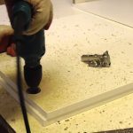 - إذا كان الحوض نقرًا ، فستكون هناك حاجة إلى فتحة على الجدار العلوي للشريط المستقبل. لهذا الغرض ، يتم تنفيذ قالب يتوافق مع قطر الحوض ، ويتم وضعه على السطح ، ويتم قطع فتحة على طول معالمه. بمساعدة حفر ، يتم الحصول على ثقب ، ويتم إدخال بانوراما فيه - اكتمال قطع كفاف.