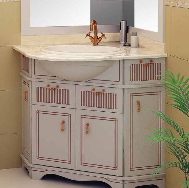 نماذج الزاوي تميز موقع الجدول. يتم تنفيذها مع وقف التنفيذ ، الكلمة. لا "تستهلك" نماذج الركن مساحة كبيرة من خلال شغل المساحة ، والتي لا تستخدم بشكل جيد في أي منطقة داخلية. يفضل استخدام حوامل ركنية في الغرف الصغيرة. طبيعة الموقع تجعل من الممكن استخدام متر مربع قيمة. يمكن أن تؤدي الأرفف الواسعة لخزائن السرير ذات الاتجاه الزاوي إلى زيادة إمكانيات نظام التخزين في الحمام بشكل كبير.