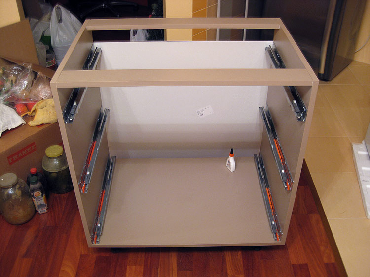 - أنها تجعل تركيب الحشوة الداخلية (أرفف ، أدراج) ، إكسسوارات (مقابض ، مفصلات) ، أبواب ، أسفل ، أرجل (إن وجدت)