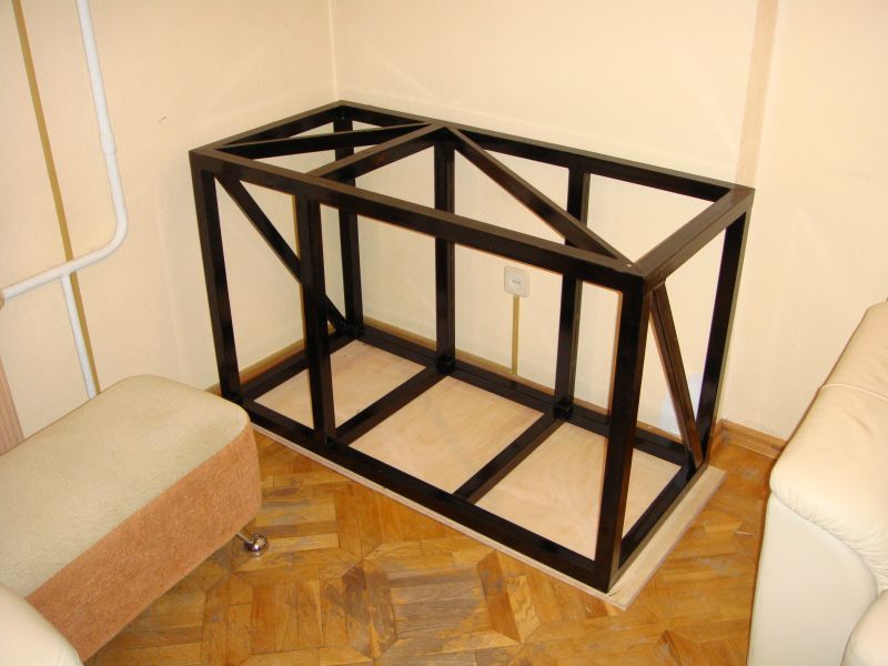 إطار الخزان الموجود تحت الحوض هو الأفضل لعمل المعادن. إذا لم يكن ذلك ممكنًا ، وسيتكون إطار الهيكل من عوارض خشبية ، فعليك اختيار عناصر قوية وليست رقيقة. من الأفضل تخطيط الأقسام الموجودة داخل الخزانة مع حساب كل 40 سم. هذا التصميم يتجنب انحرافات الطاولة.