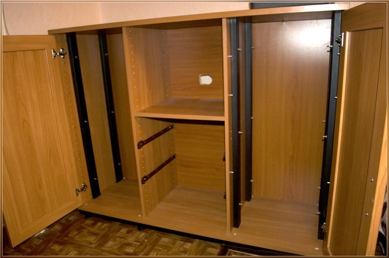 - أرفف أفقية أخرى مثبتة ، وجمع الأدراج ، ومعلقة الأبواب. بالنسبة للأدراج ، من المهم جدًا تثبيت الإرشادات بشكل صحيح ، مما يسمح باستخدامها بحرية. هي التي شنت أبواب مفصلية على الملاجئ الأثاث. عند إصلاحها ، من الأفضل استخدام أجهزة إغلاق تسمح للأبواب بفتحها وإغلاقها بشكل صحيح وبلطف.