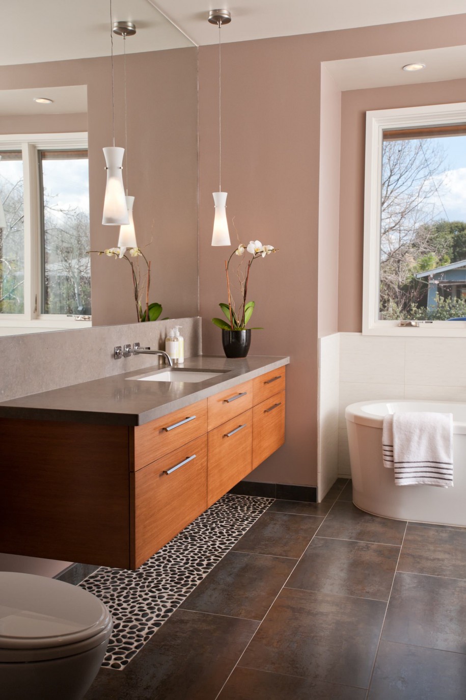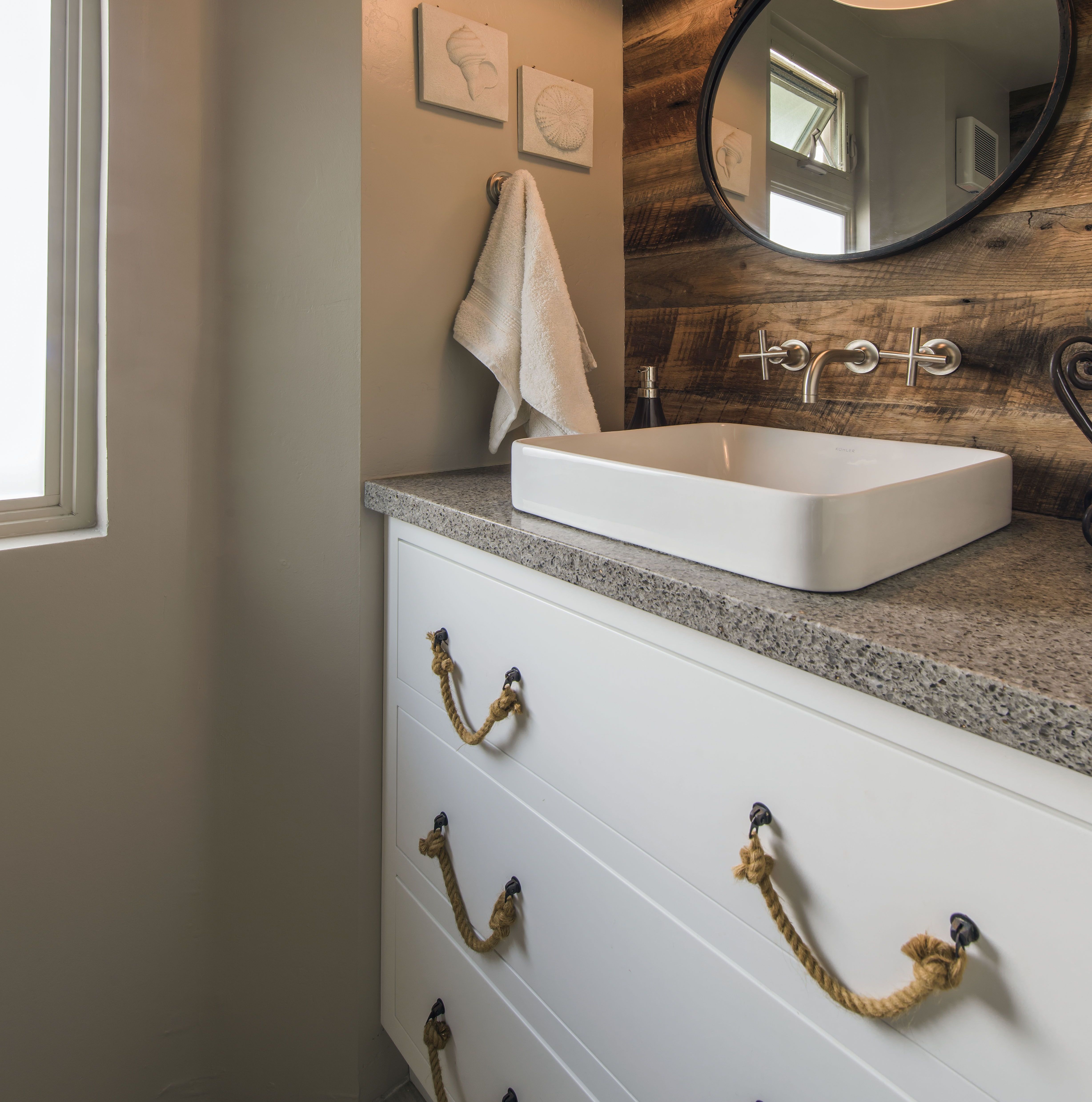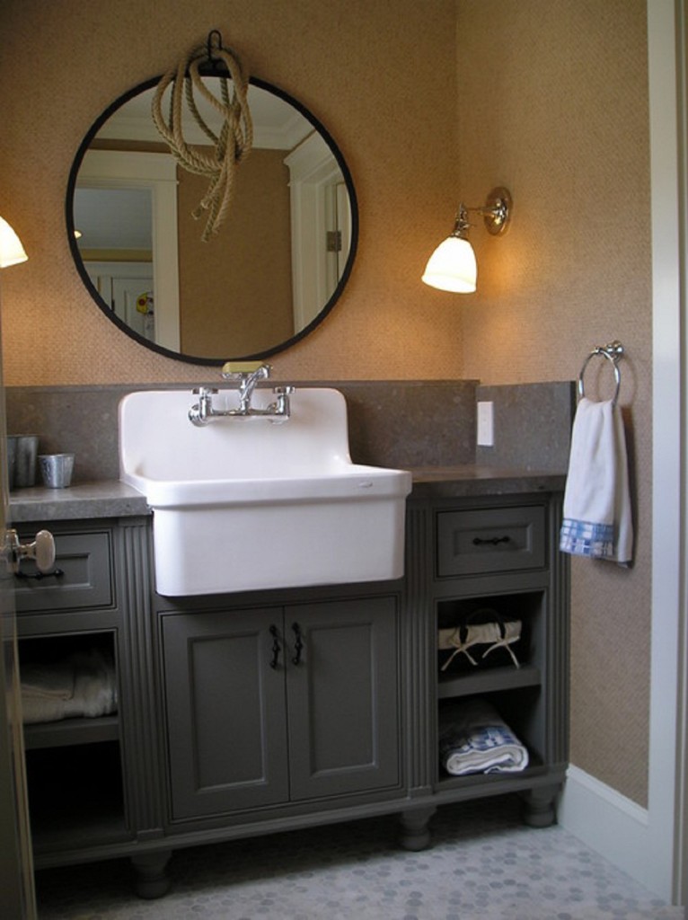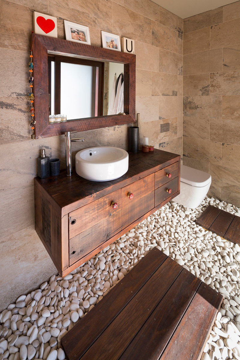 حجر الرصيف تحت المغسلة في الحمام سيكون مفيدًا بشكل خاص لإنشاء يديك.