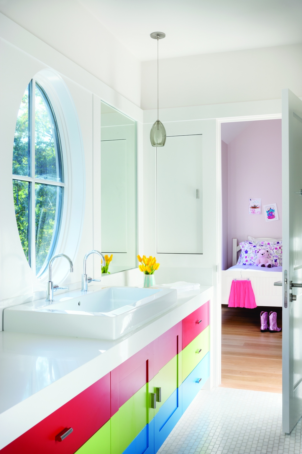 زوايا حادة ملساء توفر "سيولة" الهواء ، والضوء ، ومناسبة للغاية للحمام.
