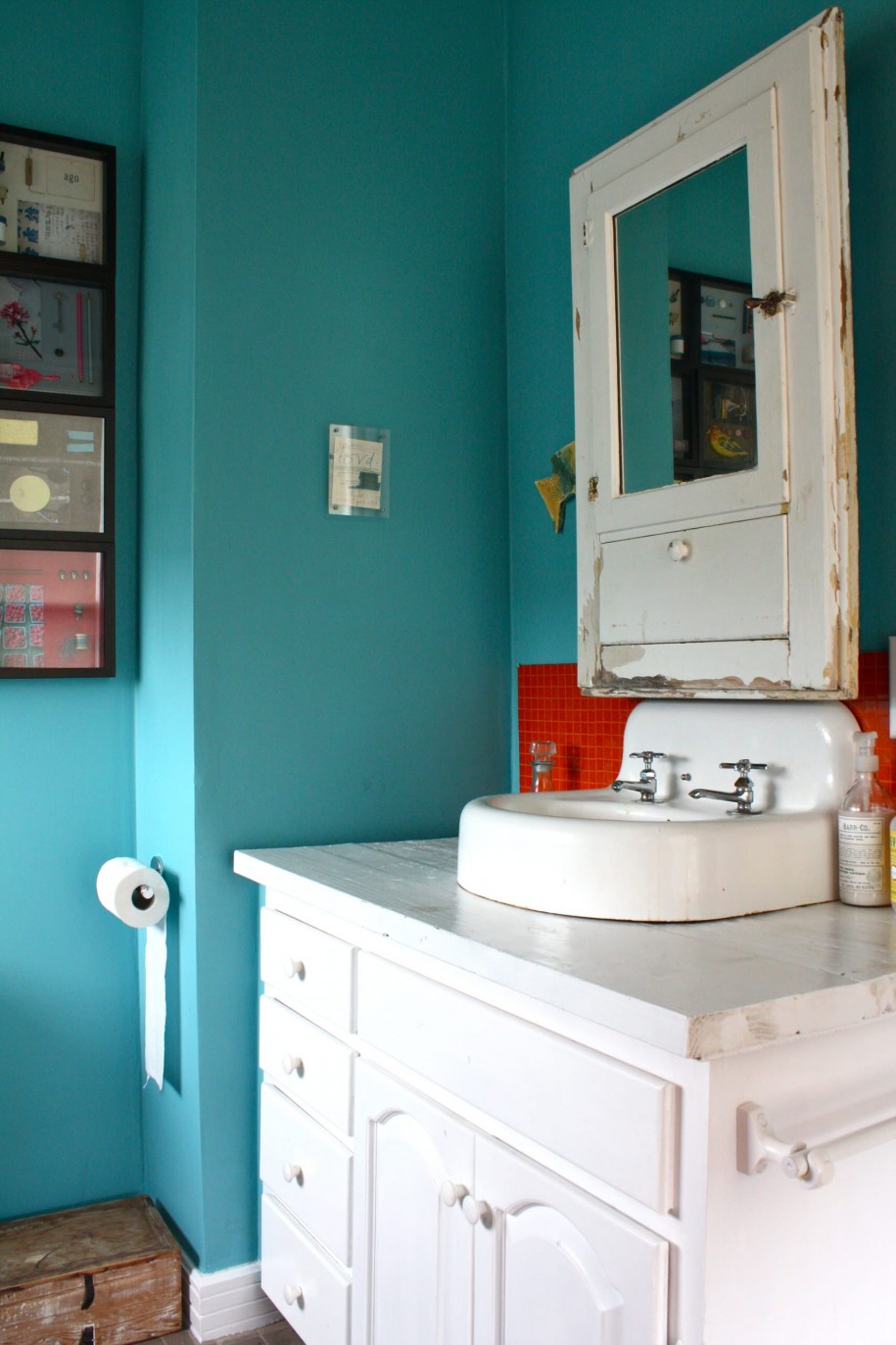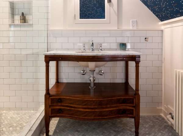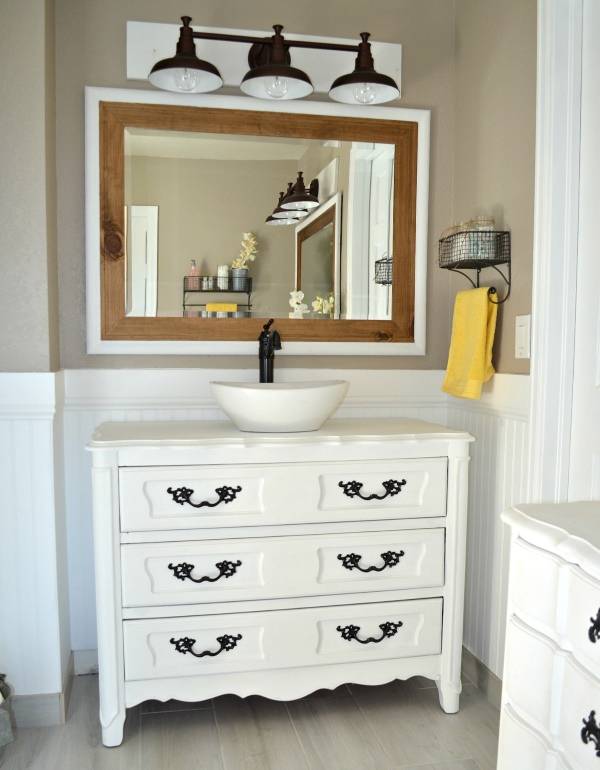 في الخزانة الموجودة أسفل الحوض دون بذل جهد كبير ، يمكنك إدارة أي خزانة أو طاولة قديمة.