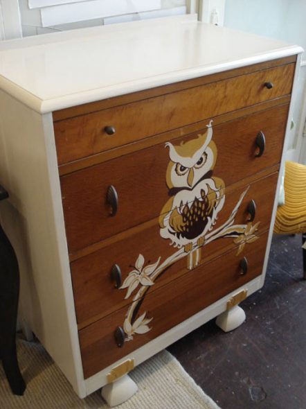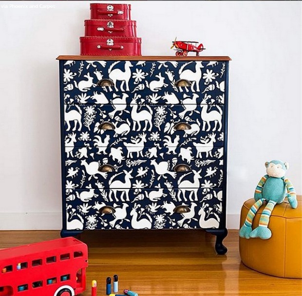 الجزء السفلي من الأدراج مغطى بالبلاستيك مع نمط للنسيج.