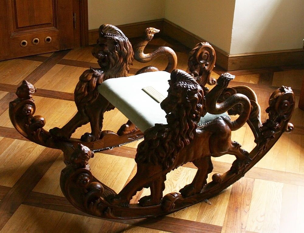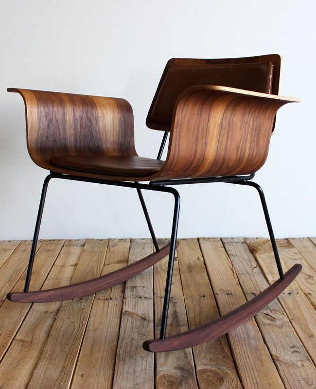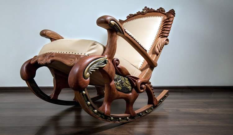 - الأجزاء الناعمة (الجلدية) - توجد كراسي هزاز مصنوعة من الخشب الرقائقي ، ومغطاة بمواد أخرى ، على سبيل المثال ، الجلود - يمكن أن تعزى إلى خيارات مكتبية صارمة ؛