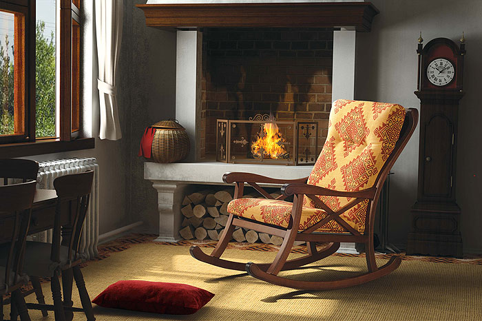 الكرسي الهزاز هو جزء أصلي وجميل من المنزل الداخلي.