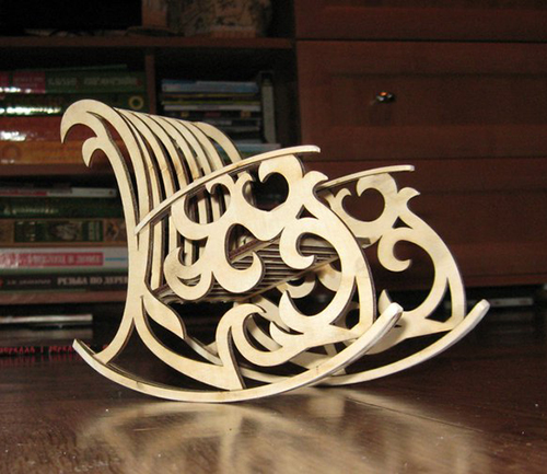 لذلك ، نحن بحاجة إلى الخشب الرقائقي القيقب 3 طبقات ، والتي سوف نطبق على أنماط تم إنشاؤها مسبقا ، وجعل الإطار للمنتج. عن طريق رسم كراسي هزاز ، يمكنك إنشاء خياراتك الخاصة أو البحث في خيارات الإنترنت الجاهزة للنموذج.