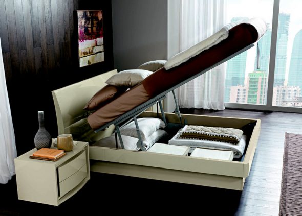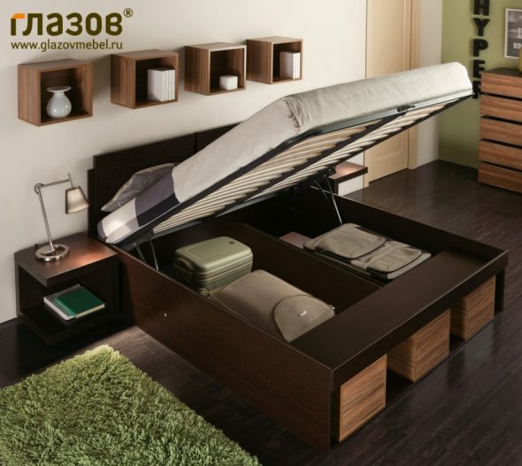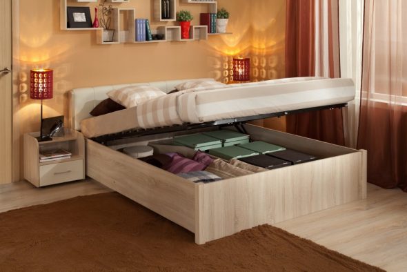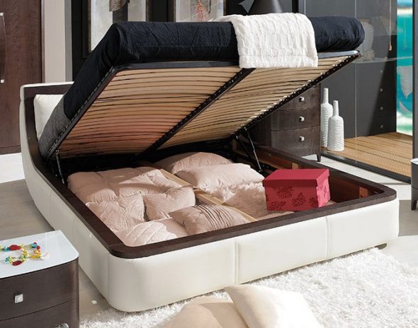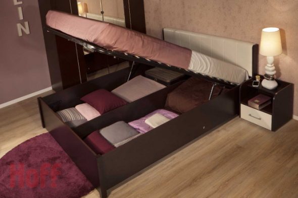 ومع ذلك ، تحتل مساحة كبيرة في الغرفة ، هناك مساحة صغيرة للتخزين. في هذه الحالة ، خيار التخزين مريحة في السرير.