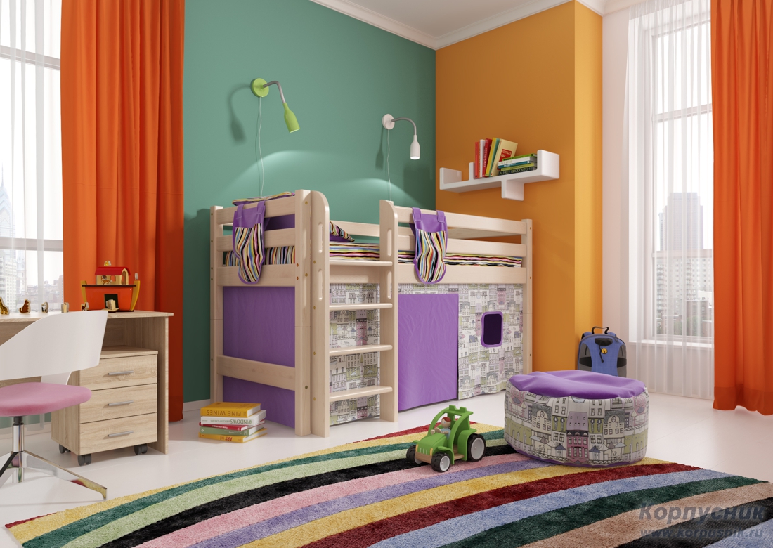 في عمر سنتين ، أصبح الأولاد والبنات متنقلين للغاية ، لذا فإن الأثاث ذو الشرائح المختلفة والمعدات الرياضية شائع.