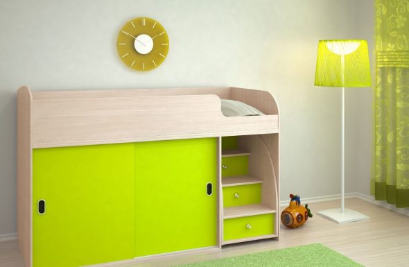 سرير مزدوج مع آلية الرفع: الحل لمشكلة التخزين.