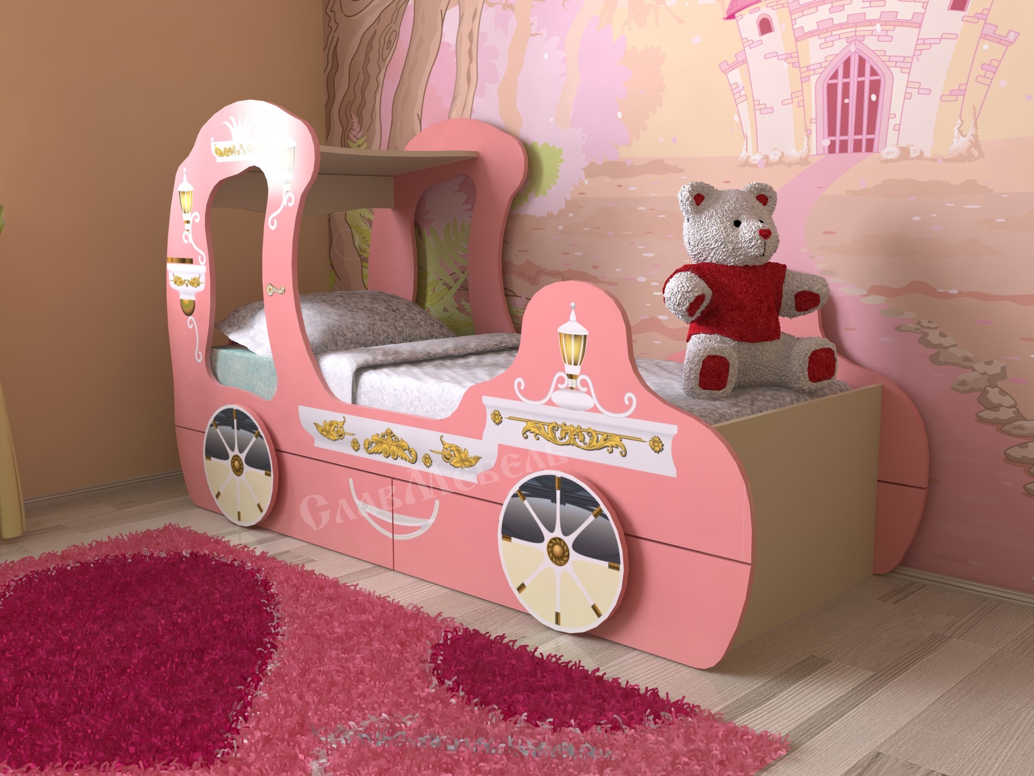 سرير مشرق للفتيات منمق كعربة - حلم كل فتاة صغيرة!