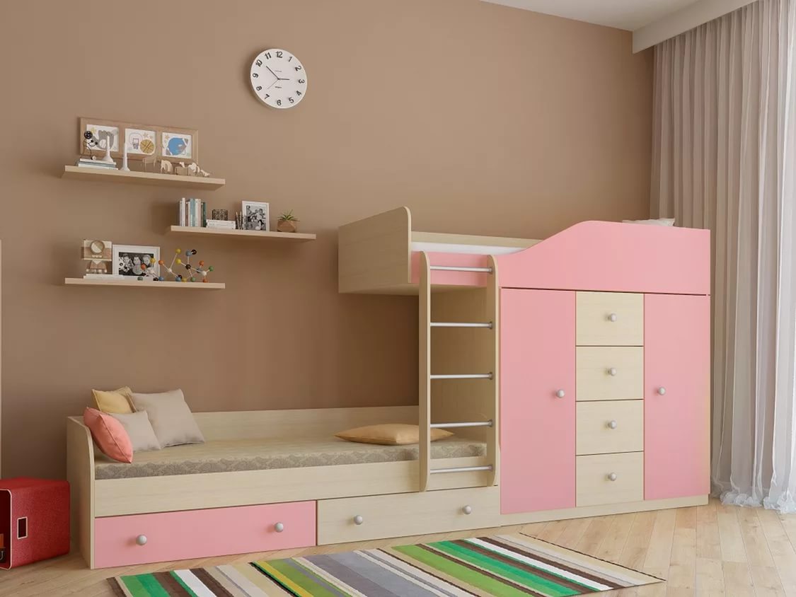 تصنع شركة ABC of Furniture تصميمات مختلفة للفتيان والفتيات. يتمتع الآباء بفرصة اختيار سرير بأي ثمن ، وفقًا للخصائص والاهتمامات الفردية للأطفال. تحتوي المجموعة على مرتبة ، وهي مجهزة بأدراج ، مقابل رسوم يمكنك إضافة الملحقات والإضاءة الساطعة. سعر المجموعة الأساسية - من 11000 روبل.