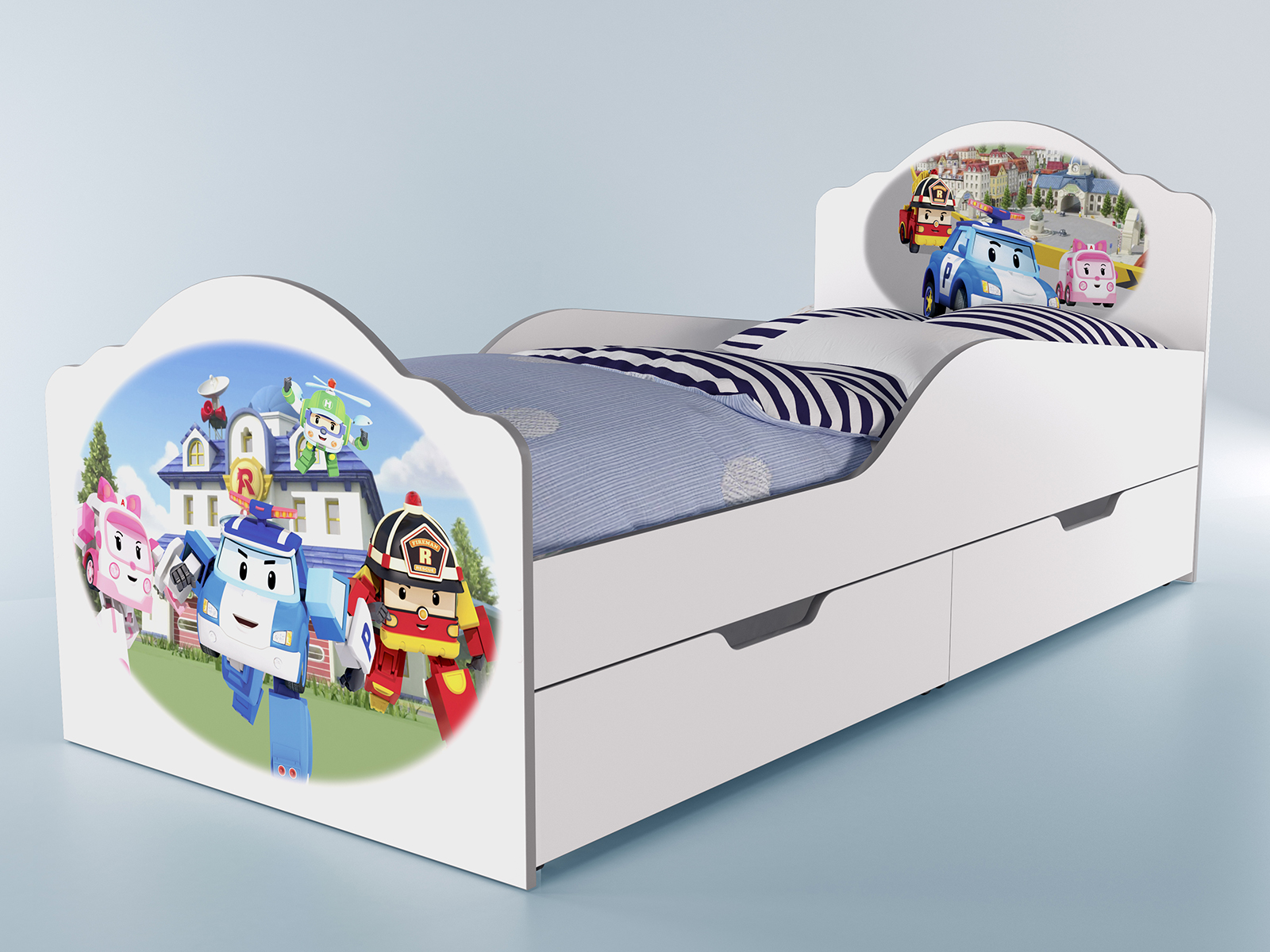 إن السرير ذو الجوانب والرسوم التوضيحية المشرقة من الرسوم المفضلة سوف يروق لأي طفل!