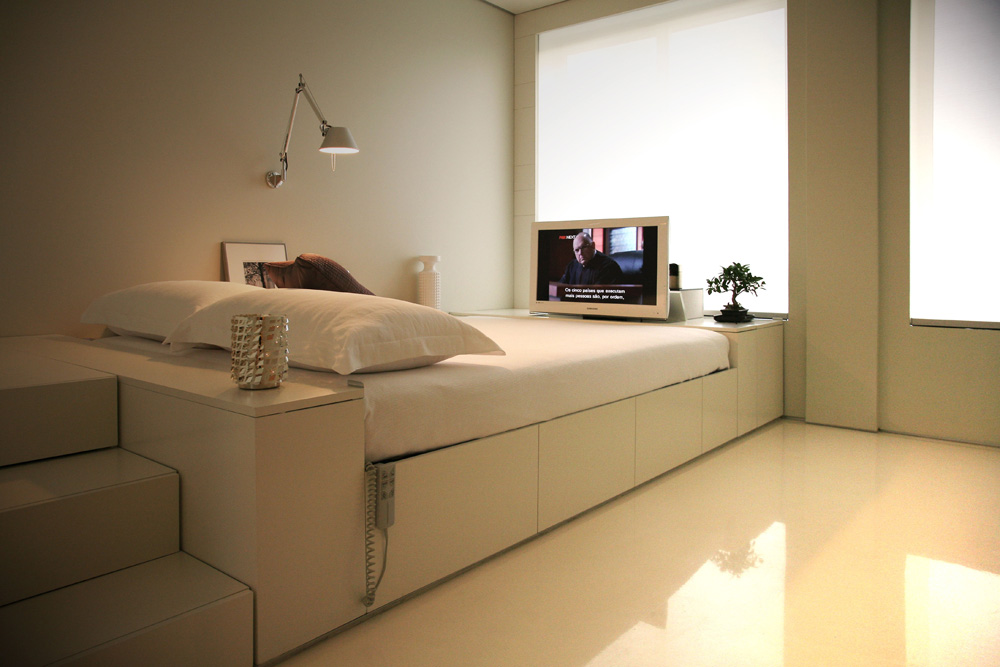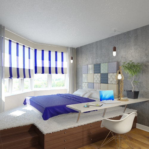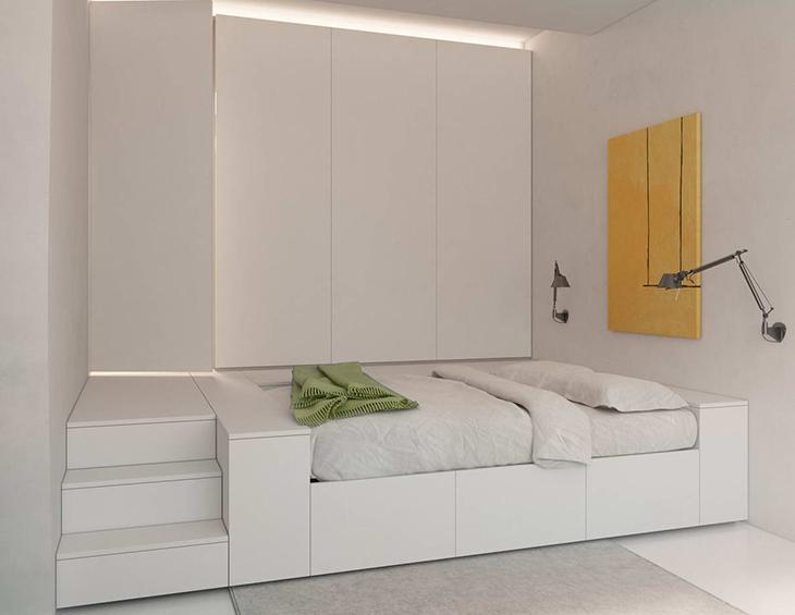 على المنصة ، يمكنك تنظيم منطقة وظيفية ، ووضع السرير على الجانب