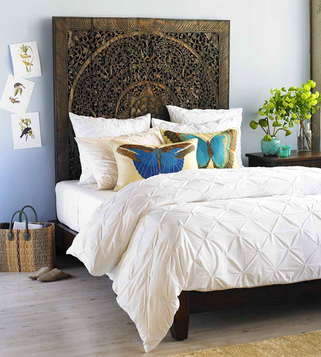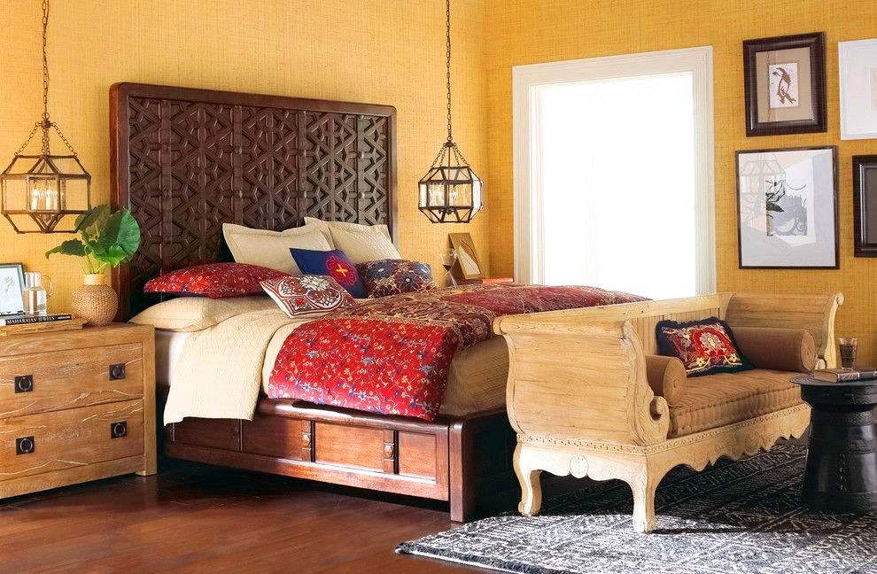 لكي تكتسب غرفة النوم مظهرًا شرقيًا ، يجب أن يكون السرير مصنوعًا من الخشب الصلب ، مع التأكيد على الأسلوب الزاهد الصارم. يرصد المنصة منخفضة قدر الإمكان. يتم تحديد لون المنتج وفقًا للون الغرفة نفسها. عند صنع غرفة نوم ، يمكنك استخدام تأثير التباين. إذا كانت غرفتك خضراء زيتون ، فإن الأثاث الأسود هو النقيض الجيد. لغرف النوم الوردي أو البني هي أفضل سرير النوم البيج.