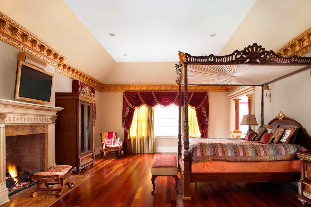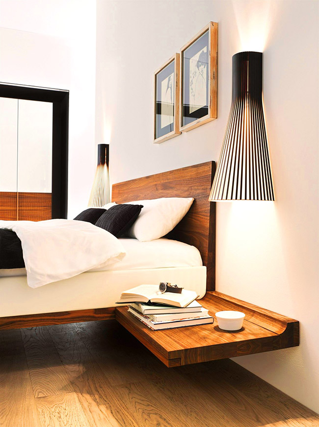 أسرة مصنوعة من الخشب الصلب في داخل غرفة النوم - 50 صورة من الأفكار: