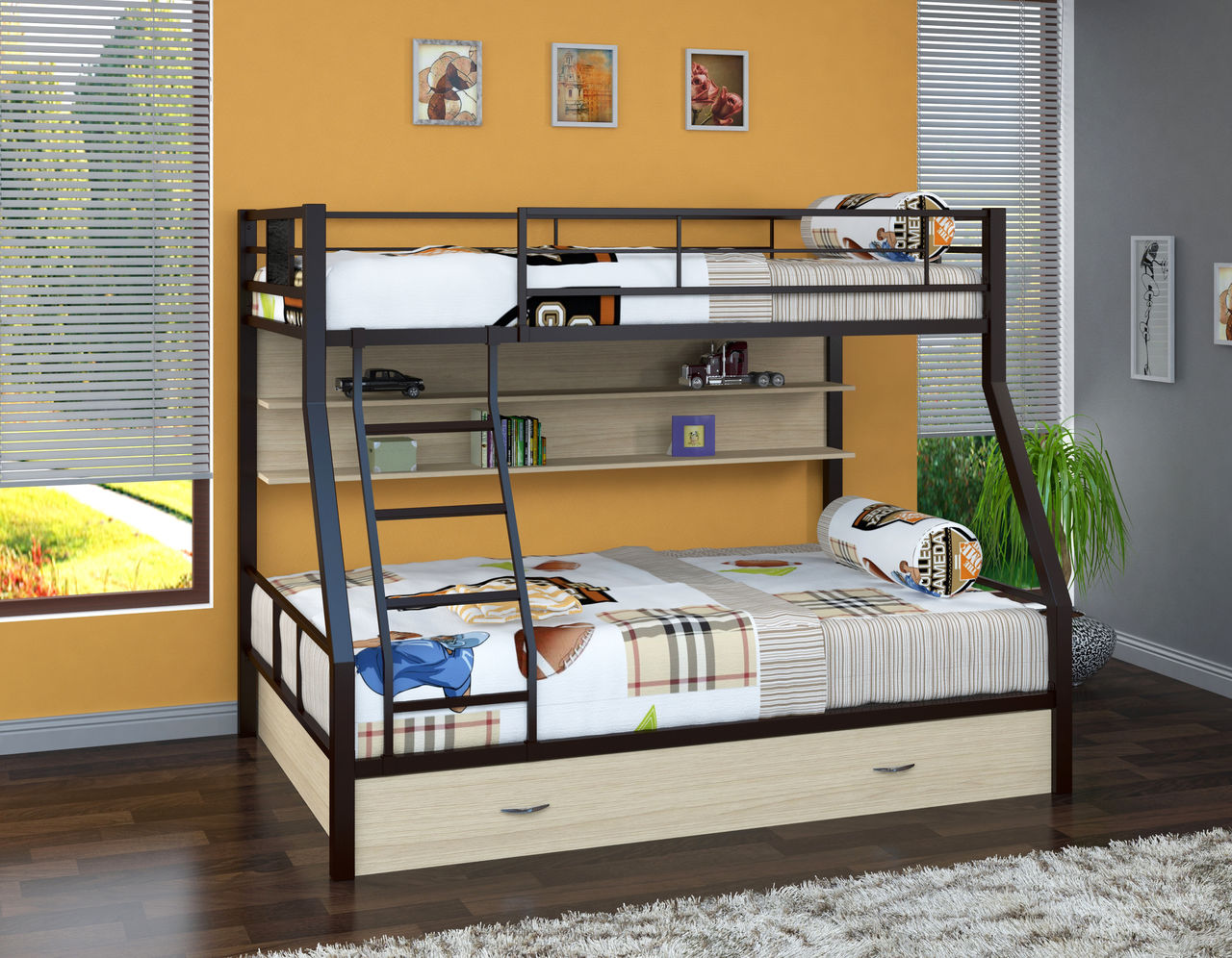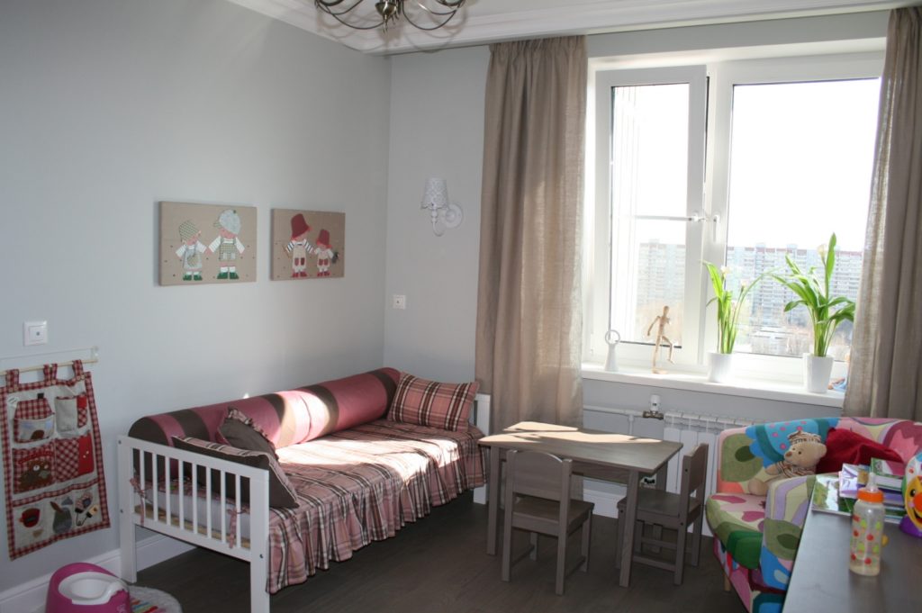 إذا كان حجم الحضانة يسمح ، للأطفال 3 سنوات فما فوق ، يمكنك تثبيت سرير مزدوج واسع.