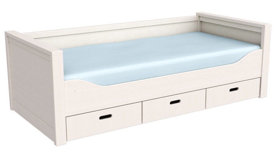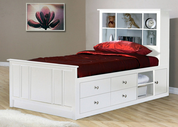 يبقى حجم السرير دون تغيير ، ويمكن وضع الأدراج والخزائن في أسفلها أو جانبها.