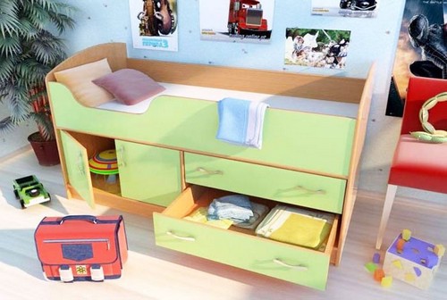 الآن أسرة شعبية والأرائك في شكل الآلات والعربات ولعب الأطفال الناعمة. يمكن أيضًا أن تكون مجهزة بأدراج قابلة للسحب أسفل القاع ، تفتح من الجانب ، على طول طول السرير أو في المقدمة ، عند القدم. لا تفسد المظهر ، يمكن أن تكون قابلة للطي أو قابلة للطي. الغرض منها هو إنشاء مساحة تخزين إضافية ، وتوفير مساحة في الغرفة.