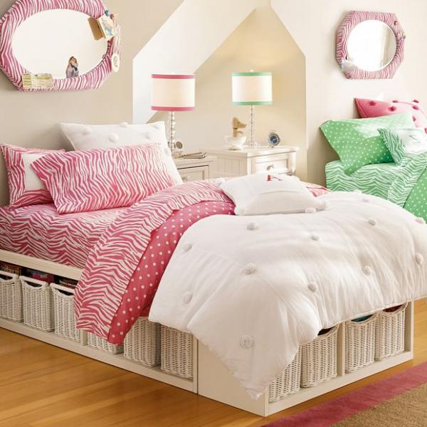 السرير المراهق لا يختلف تقريباً عن البالغين ، حتى حجم السرير يمكن أن يكون هو نفسه. التصميم يعتمد على النمط العام للغرفة. يمكن تجهيز الأسرة بسرير إضافي يوضع "في الدرج". تتدحرج من أسفل القاع ، وتوضع أدراج أسفلها تحت السرير.