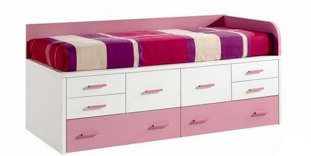 كقاعدة عامة ، توجد الأدراج أدناه ، ولديها آلية ملائمة للتداول: توجد بكرات صغيرة على الدرج ، وعلى الجدران الجانبية في أسفل السرير توجد قضبان توجيه تتحرك عليها الأسطوانة.
