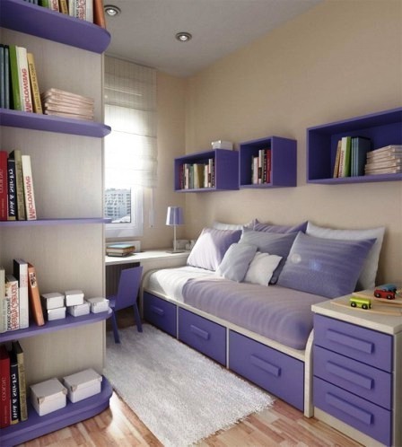 يمكن تجهيز سرير لطالب في المدرسة ، حيث يعتمد حجم السرير على عمر الطفل ، بأدراج لتخزين الأشياء والفراش. إذا قمت بالترتيب ، فيمكنك وضع صف واحد أو اثنين أو ثلاثة من الصناديق ذات الأحجام المختلفة أسفل أو الجانب السفلي عند سفح السرير. في الحالة الأخيرة ، يمكن أن يكون رفوف مفتوحة ، خزانة مغلقة مع رفوف أو الشماعات.