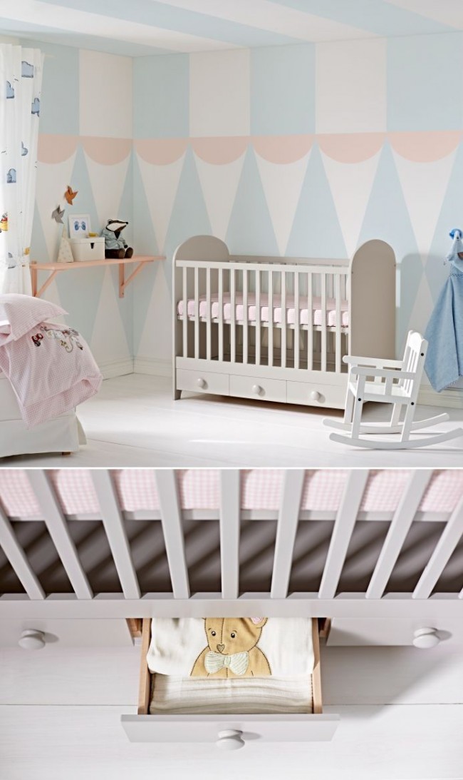 هذا السرير مختلف الوظائف - تحته أدراج غير مرئية لتخزين أشياء الأطفال.