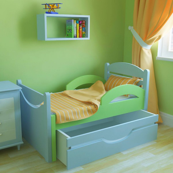 تم تجهيز العديد من أسرة الأطفال الحديثة بأدراج سفلية للفراش ، وهي مريحة للغاية. يتيح لك ذلك توفير مساحة أكبر في الخزانة للعب والألبسة الخارجية.