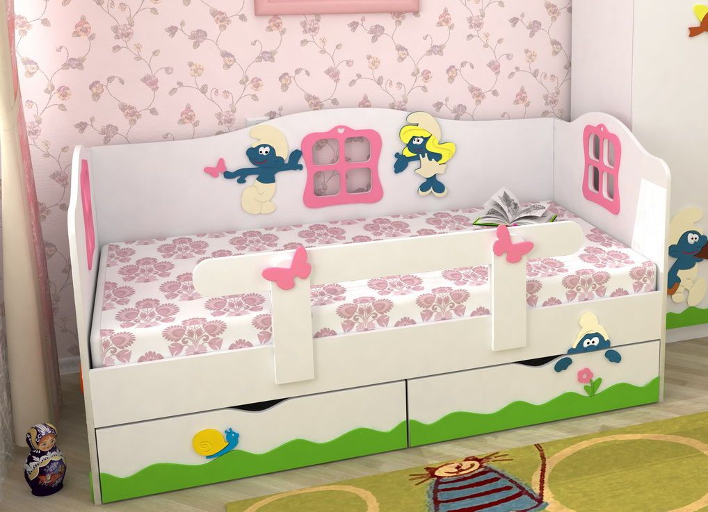 بالنسبة للفتاة ، من الأفضل اختيار سرير بأشكال انسيابية - فهناك العديد من نماذج الأطفال.